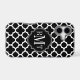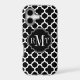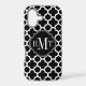© 2013 Socialite Designs. Our elegant quatrefoil design in black and white mobile phone case has a banner for your monogram, initials or name.