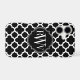 © 2012 Socialite Designs. Our elegant quatrefoil design in black and white iPhone case has a banner for your monogram, initials or name.