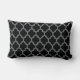 Black, white and grey quatrefoil pattern lumbar pillow.