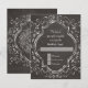 Matching RSVP Response return by mail card including white envelope. Beginning with hand drawn script swirl calligraphy flourishes that have been turned into a hand written chalkboard effect and paired with a double border quatrefoil style frame also in chalky drawing. On the reverse side is a place to put your monogram initial inside the sketch of a starburst design. Art by internationally licensed artist and designer, Audrey Jeanne Roberts, copyright.