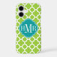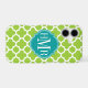 © 2012 Socialite Designs. Our elegant quatrefoil design in green and white iPhone case has a banner for your monogram, initials or name.