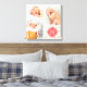Beautiful personalised canvas wall art print with 3 of your custom newborn baby photos arranged in a square grid photo collage. Personalised with your child's name or monogram in the bottom corner in a quatrefoil frame over modern trendy Moroccan lattice pattern background. Add your favourite family photos and create a beautiful keepsake canvas art print. Click Customise It to move photos around, change the background colour, and customise monogram fonts and colours. Great gift for family, friends, parents and grandparents!
