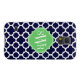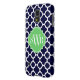 © 2012 Socialite Designs. Our elegant quatrefoil design in dark blue and white Samsung case has a banner for your monogram, initials or name.