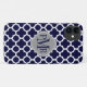 Quatrefoil Navy Blue White Pattern Grey Monogram Case-Mate iPhone Case
