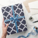 Navy Blue quatrefoil pattern gift wrapping paper. High quality printed matte, glossy, linen or Tyvek paper gift wrap. Classic Moroccan ogee quatrefoil design, made and printed in the USA. Ideal for birthday, anniversary and wedding gifts or Christmas presents.