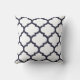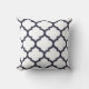 Navy Blue and White Quatrefoil pillow. Made in the U.S.A. from the highest quality cotton or polyester. Decorative throw pillows with a quatrefoil trellis pattern in modern colours. Available in three sizes, perfect for the living room, family room or bedroom.