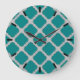 Quatrefoil teal and grey large clock