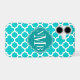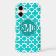 © 2012 Socialite Designs. Our elegant quatrefoil design in turquoise and white iPhone case has a banner for your monogram, initials or name.