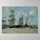 Vintage maritime painting "Quay at Honfleur," from 1865 by Eugene Boudin.