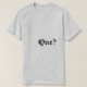 Fun with language. "Que?" in Spanish is "what?" So, if someone asks you a question you don't understand, didn't hear, or don't care to answer, point to your t-shirt.