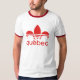T-shirt is hip, cool, sporty. looks great. red on blue color combo pops stands out.