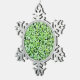 This lovely, lacy white flower is the wild carrot. It was introduced and naturalised in North America, where it is often known as Queen Anne's Lace. The single flower head on this pewter holiday ornament, with it's pattern of hundreds of tiny blossoms, is set against a background of green, yellow and black.