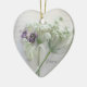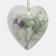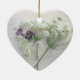 A heart ornament with white Queen Anne's lace, white bougainvillea and tiny heliotrope flowers on old handwriting is wonderful for a bridesmaid or flower girl gift, or a wedding guest favour.