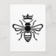 The bee queen is depicted in a profile view, with her wings spread out and her stinger visible, wearing a tall, elaborate crown that sits atop her head, symbolising her status as the queen. The crown is intricate, with detailed curves and flourishes that highlight the queen's regal status.