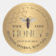 Beekeepers will love this honey label! The vintage Queen Bee illustration is both bold and stunning, and the word 'honey' is offset in 3D metallic gold text. Eye-catching without being cluttered, it includes editable text that allows you to tell the buyer what type of honey they're buying (raw, local, back yard, clover) along with your apiary name and location. The subtle colours exude sophistication. Best of all? The round design makes it perfect for both the front of honey jars or the lid, so you don't need to buy separate sizes for your various bottles. Happy beekeeping!