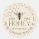 Beekeepers will love this honey label! The vintage Queen Bee illustration is both bold and stunning, and the word 'honey' is offset in 3D metallic gold text. Eye-catching without being cluttered, it includes editable text that allows you to tell the buyer what type of honey they're buying (raw, local, back yard, clover) along with your apiary name and location. The subtle colours exude sophistication. Best of all? The round design makes it perfect for both the front of honey jars or the lid, so you don't need to buy separate sizes for your various bottles. Happy beekeeping!