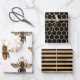 Classy Gold Queen Bee wrapping paper, If your looking for a unique gift wrap this might just be it this year. Black base wrapping paper with gold queen bee's coordinated with honey comb and stripes sheets to wrap your special gifts.