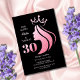 Queen Crown Pink Glitter Black 30th Birthday Invitation