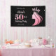 Queen Crown Pink Glitter Black 50th Birthday Banner