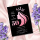 Queen Crown Pink Glitter Black 50th Birthday Invitation