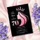 Queen Crown Pink Glitter Black 70th Birthday Invitation