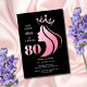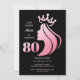 Queen Crown Pink Glitter Black 80th Birthday Invitation