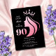 Queen Crown Pink Glitter Black 90th Birthday Invitation