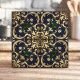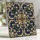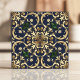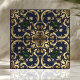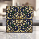 Queen Esther Damask Scroll Navy Blue Gold Tile