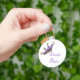 Purple whimsical text reads Queen Mum on this white round key chain, with a jester style purple crown completing this great Mother's day gift.