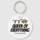 Queen of Everything funny custom keychain. Personalised key chain for wife, girlfriend, coworker, colleague, employee, teacher, coach, friend, mum, girl, daughter, sister, aunt, grandma, lady boss etc. Cute round button keychain design with crown and humourous quote for women. Office humour presents. Also nice as Birthday gift for her.
