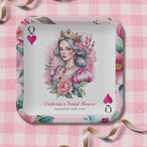 Queen Of Hearts Playing Card Pink Bridal Shower Paper Plate