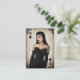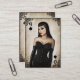 Pinup style queen of hearts customisable business card design with grunge effects. Features an illustration of a young woman wearing a black corset, and an ornate floral frame.