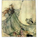 Arthur Rackham was one of the leading illustrators from the 'Golden Age' of book illustration. His rich watercolor paintings are some of the most popular images of fairy tales and folklore. His fantasy illustrations were chiefly based on strong pen and India ink drawings paired with subtle use of watercolor. This image is called "Queen of the Fairies".
