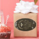 Brown Oval label with honeycomb and heraldic honeybee. Honey is written in a decorative chiseled gold metallic font.