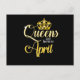 Queens are Born in April Women Girl Birthday Holiday Postcard