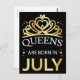 'Queens Are Born In July' cool quote with a crown illustration for birthday girls.