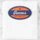 Oval signage design featuring the neighbourhoods of New York City. Official orange and blue colours of NYC. New York City borough of Queens.