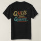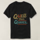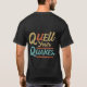 A vibrant t-shirt design featuring the text "Quell Your Quakes" in a bold, multicolor graffiti style.
