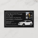 Quick oil change business card template for the automotive services industry with image of an SUV and oil change graphic in the background in a design you can customise online.