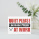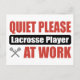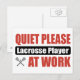 Quiet Please Lacrosse Player At Work. If Lacrosse is your hobby, occupation, or obsession, show it with great Lacrosse t-shirts, mugs, stickers, and more. They're also great gifts for other Lacrosse fans!