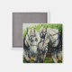 A tender moment is shared between a team of dapple grey Percherons as they take a moment of rest. Vibrantly coloured this artful equine magnet is sure to please any equine enthusiast. Created from the original artwork of Mona Majorowicz.