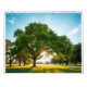 12‑month calendar with a green field and big tree artwork as the main nature theme.