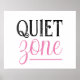 Quiet Zone Quote Black Pink Text Poster. Perfect poster for those areas where you need some peace and quiet to read, work, study or anything else. Two types of fun typography in black and pink. Want different colours or fonts? That's ok! You can use the design tool to change them to something that fits your personality.