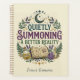 This "Quietly Summoning a Better Reality" design features a whimsical blend of mystical elements including a celestial moon, lavender sprigs, and a magic spellbook. Perfect for manifestation, habit tracking, and daily organization, the artwork combines deep purple, forest green, and gold tones in a vintage-inspired illustration that inspires a more intentional life.
