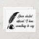 In these turbulent and upsetting times, it is important to take action to protect your interests and promote your vision of a how government should work. Between election cycles, while you are waiting to cast your vote, there is something you can do. You can write your legislators and other elected officials to voice your concerns and tell them what you want done. Be that a protest, vote of support, or suggestion. One postcard may not seem like much of a force to be reckoned with, but multiply that by hundreds, thousands and millions of similarly minded constituents and you will, indeed, be a force of nature. Use this card as an attention getter when it lands in your official’s office mail. It is best to write your message in your own hand on the back side, along with the appropriate mailing address. You may also edit the text on the front to make the point a little differently.