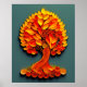 This autumn tree shows a digital form of paper art known as quilling where thin strips of paper were rolled, shaped, and arranged to create the image of a tree in autumn. The autumn trees are typically depicted with colorful leaves in shades of red, orange, and yellow, and sometimes brown.
