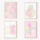 Quilt Art Print Set: Flower on Pink Background