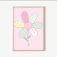 A combination of soft, quilt inspired designs, and a flower creates this cute, bedroom wall decor art print. The background is light pink, while the flower consists of white with light shades of green, yellow, and pink. This art print features a signature by me, the artist.