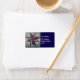 A patiotic quilt block star pattern on weathered wood is on this dark blue custom address label. Original photograph copyright Ann Powell all rights reserved.