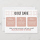 The front of the card tells how to wash, dry, and store their new quilt. The back of the card has space for the maker to write in important information about the quilt: who it's made by, where it's made, when it was made, what pattern it was made with, quilting details, and material details.